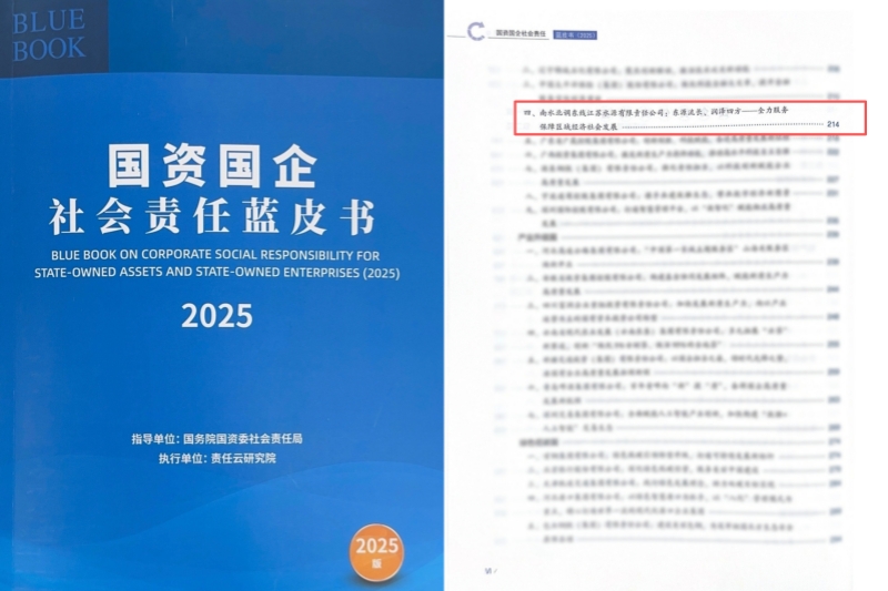 12月5日,在国务院国资委社会责任局主办的中央企业和地方国资国企社会责任蓝皮书发布会上,江苏水源公司案例《东源流长、润泽四方——全力服务保障区域经济社会发展》成功入选地方国有企业社会责任典型案例“科技创新篇”,充分彰显了公司在服务国家战略、推动可持续发展方面作出的积极贡献,这是江苏省属企业层面入选的2家企业之一。