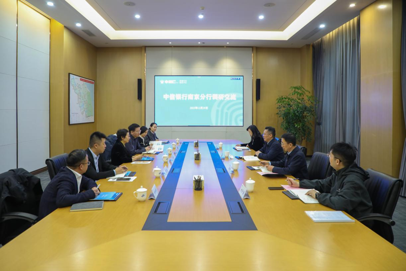 袁连冲对刘月珍一行的到访表示欢迎,对中信银行南京分行一直以来的合作支持致以感谢。他表示,自双方建立合作关系以来,互信不断加深,合作成果显著。通过此次深入交流,进一步巩固和加深了彼此的战略伙伴关系。双方在精准对接现阶段合作需求的基础上,就下一步开拓更广阔的合作领域进行了富有建设性的探讨。希望在“十五五”规划即将开局起步的关键时期,双方能继续携手并进,通过多元化、深层次的银企合作模式,充分整合双方资源与专业优势,在重大项目建设、司库管理优化、战略性新兴产业布局等方面实现更深层次、更广范围的合作共赢,为双方高质量发展持续注入强劲动能。