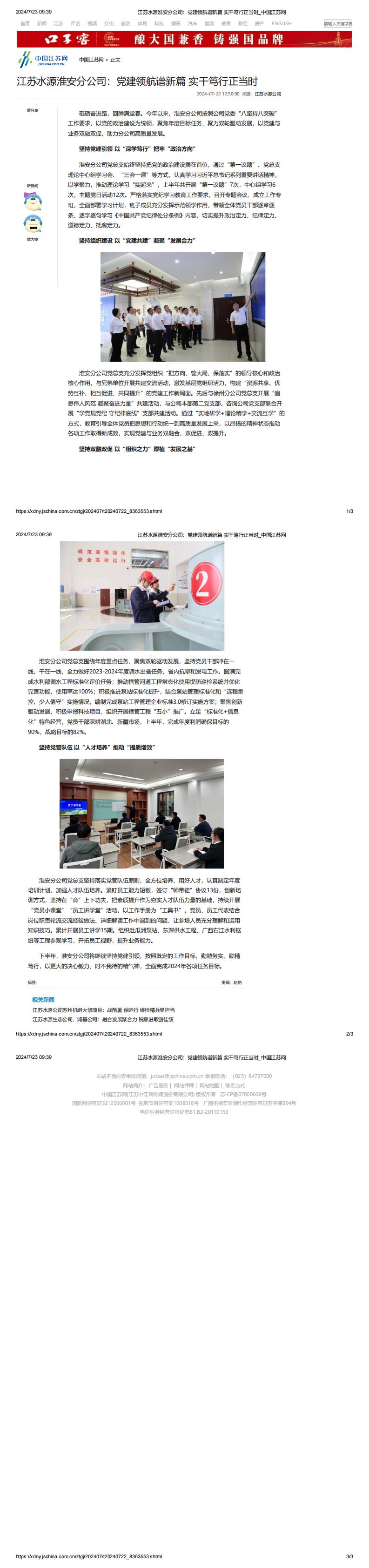 中国江苏网:江苏水源淮安分公司:党建领航谱新篇 实干笃行正当时