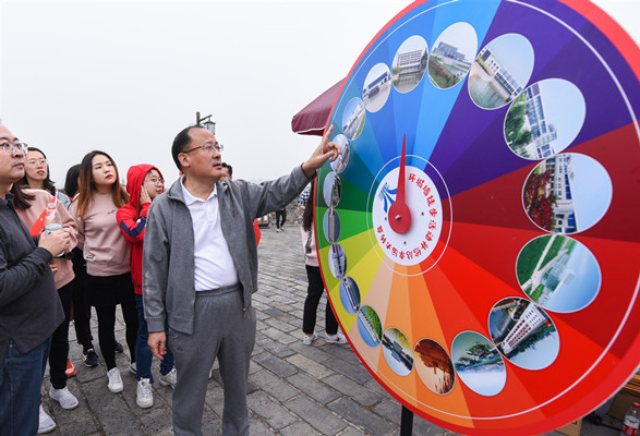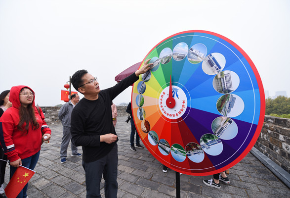 久负盛名的中华门为此次徒步公益活动的重要宣传点,大家徒步至此,开展了 “泵站工程猜猜看” 、“我为祖国和开云手机平台送祝福”、“我与红旗合个影”等系列活动,特别是“泵站工程猜猜看”活动,大家热情高涨,踊跃参与,使得现场气氛热烈而活跃。沿着城墙布置的“共庆祖国70华诞,喜迎通水6周年”、“走生态文明健康路,做开云手机平台追梦人”、“不忘初心 牢记使命,徒步古城墙 建功新时代”等宣传横幅在古城墙上格外醒目,引起不少游客驻足关注。