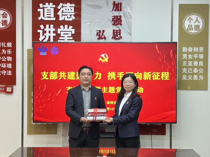 侯勇在会议小结时指出,两个党支部要常态化开展共建活动,坚持以党建为引领、以联建聚合力、以共建促发展,通过搭建活动平台,推动党建联建共建工作常态化、多元化、优质化,提高党建工作质量。侯勇还对徐州分公司一季度的经营成果给予肯定,表示徐州分公司要鼓足工作劲头、保持发展势头,戒骄戒躁、再接再厉,努力在一季度“开门红”的基础上实现“季季红”“全年红”。