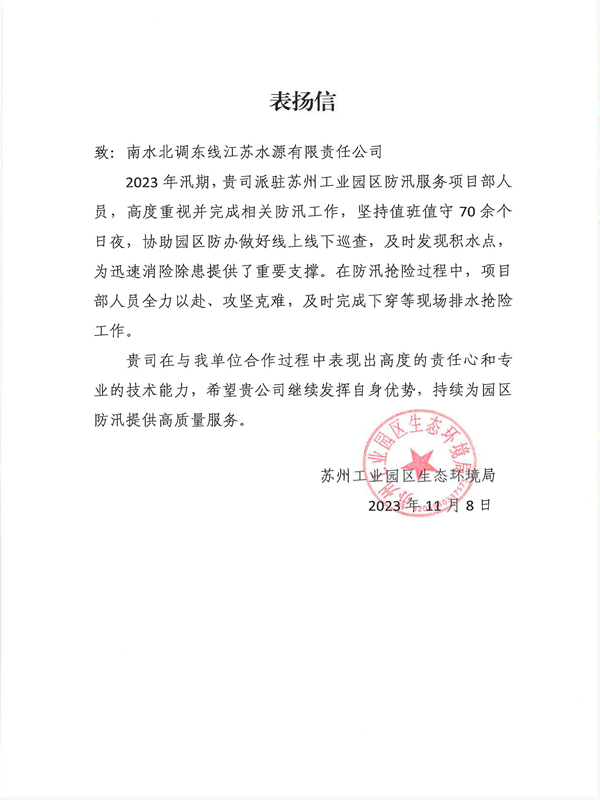 (苏州项目部获表扬信)