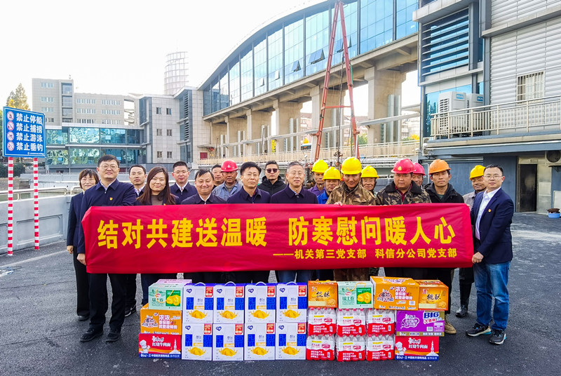 朔风渐起,寒意渐浓,工地上已是寒风习习,在江苏水利工程全要素精密监测技术服务项目武定门节制闸施工现场却是一派热火朝天的景象,三十余名工人和施工管理人员不畏寒冬坚守岗位,抢进度、赶工期,全力以赴保障项目的顺利实施。11月30日,公司第三党支部与科信分公司党支部共赴项目一线开展慰问暨支部共建活动,在寒冷的冬日把组织关怀送到项目一线员工的心坎上。
