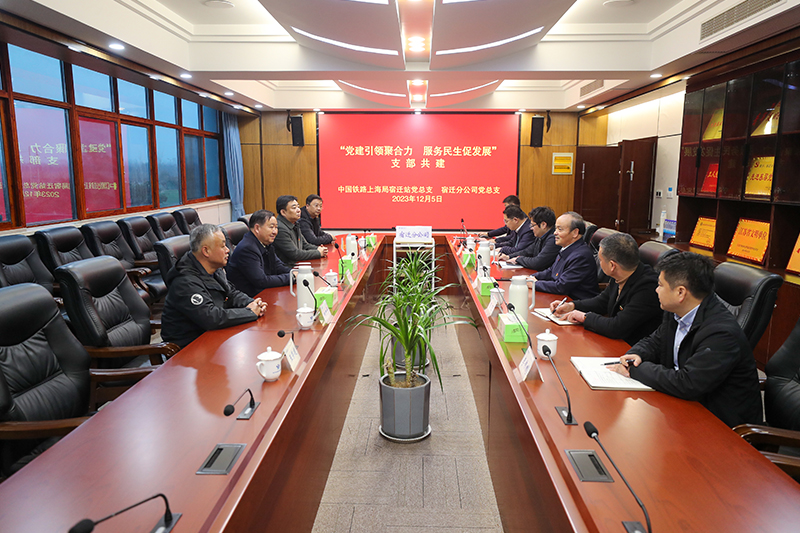 为实现党组织优势互补,党建促进业务,努力构建“资源共享、优势互补、互相促进、共同提高”的党建工作目标,12月5日,宿迁分公司党总支与中国铁路上海局宿迁站党总支开展“党建引领聚合力、服务民生促发展”共建交流活动。中国铁路上海局宿迁站领导班子成员、党员代表,分公司领导班子成员、党员代表参加活动。