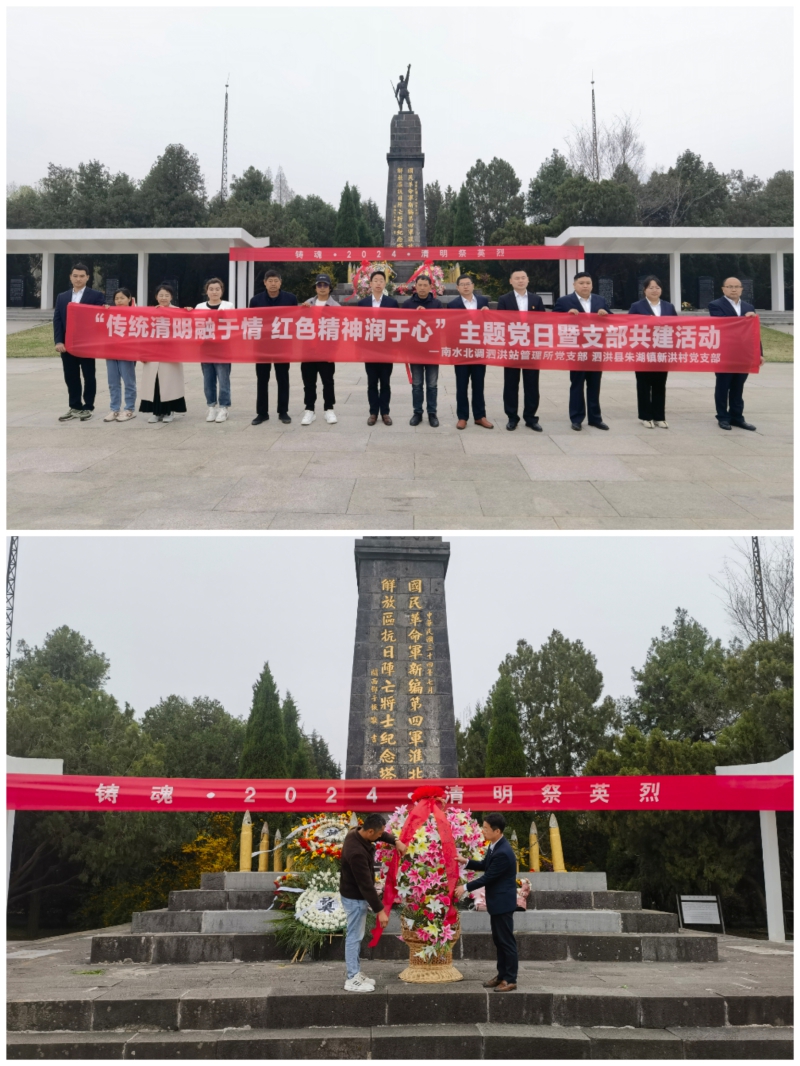 清明时节,细雨纷飞,芳草绿野间弥漫着哀思之情。4月2日,泗洪站管理所党支部与泗洪县朱湖镇新洪村党支部在泗洪县半城镇雪枫陵园开展“传统清明融于情 红色精神润于心”主题党日及支部共建活动。