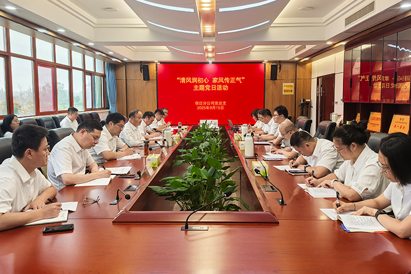根据公司关于开展廉洁文化宣传教育月活动的通知要求,为深入学习贯彻习近平总书记关于注重家庭家教家风建设的重要论述,进一步强化党员干部廉洁修身、廉洁齐家意识,充分发挥家庭在党风廉政建设中的积极作用,构筑拒腐防变的家庭防线,以好家风涵养好作风,助力分公司高质量发展,9月15日,宿迁分公司组织开展“清风润初心 家风传正气”主题党日活动。宿迁分公司党总支委员、领导班子成员,各支部、各部门、水文水质中心、泗洪站管理所党员及入党积极分子参加活动。