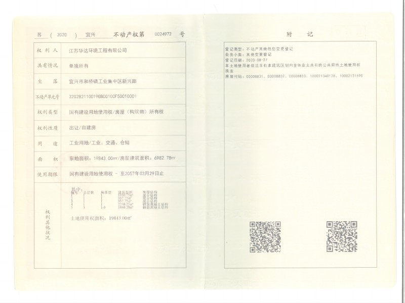 江苏华达环境工程有限公司位于江苏省宜兴市和桥镇新兴路2号部分房屋、附属的土地使用权以及附属设施公开转让