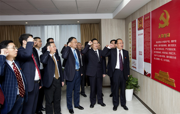 1月17日上午,开云手机平台江苏水源公司“水源红”党建文化活动阵地在宁启用,公司党委班子成员在党员活动室重温了入党誓词,并开展2020年第一次中心组学习(扩大)视频会议,首次启用了“水源红”智慧党建系统,公司纪委(监察专员办)在警示教育室为新提任中层副职开展了廉洁教育会议,公司团委在职工文化活动室开展了“节水护水”青年学习社成立暨读书分享活动。公司党委书记、董事长荣迎春和党委副书记、总经理袁连冲启用“水源红”党建文化活动阵地。公司党委班子成员刘军、濮学年、李松柏、徐向红,公司高管,机关各支部书记、在宁子公司党组织书记出席启用活动。
