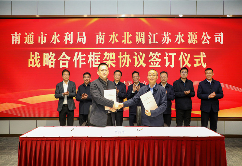 3月4日,江苏水源公司与南通市水利局签订战略合作框架协议,南通市水利局党组书记、局长吴晓春,公司党委书记、董事长袁连冲出席签约仪式并代表双方致辞,公司党委委员、副总经理吴学春主持签约仪式与南通市水利局党组成员、总工程师丁盛代表双方签约。