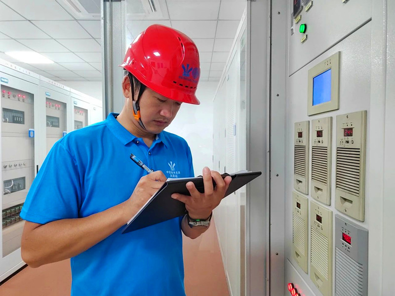 “五一”小长假期间,熊涛为了让外地同事能和家人团聚,主动留站值班,在5月1日18时30分接到洪泽站短时开机发电调令,于19时30分开启两台水轮机组并网运行。“G18手车摇进,已合闸”“调速器机频已调至50”“已完成导叶调节”对讲机里的声音在厂房里回响,洪泽湖的水涛涛而流,嗡鸣声与长夜相伴,在为下游补水的同时,化作清洁能源一路奔向远方,熊涛和他的班组是磅礴工程大事记背后的默默无闻,在劳动节期间,将辛勤写在洪泽站暮色四合的天光里。