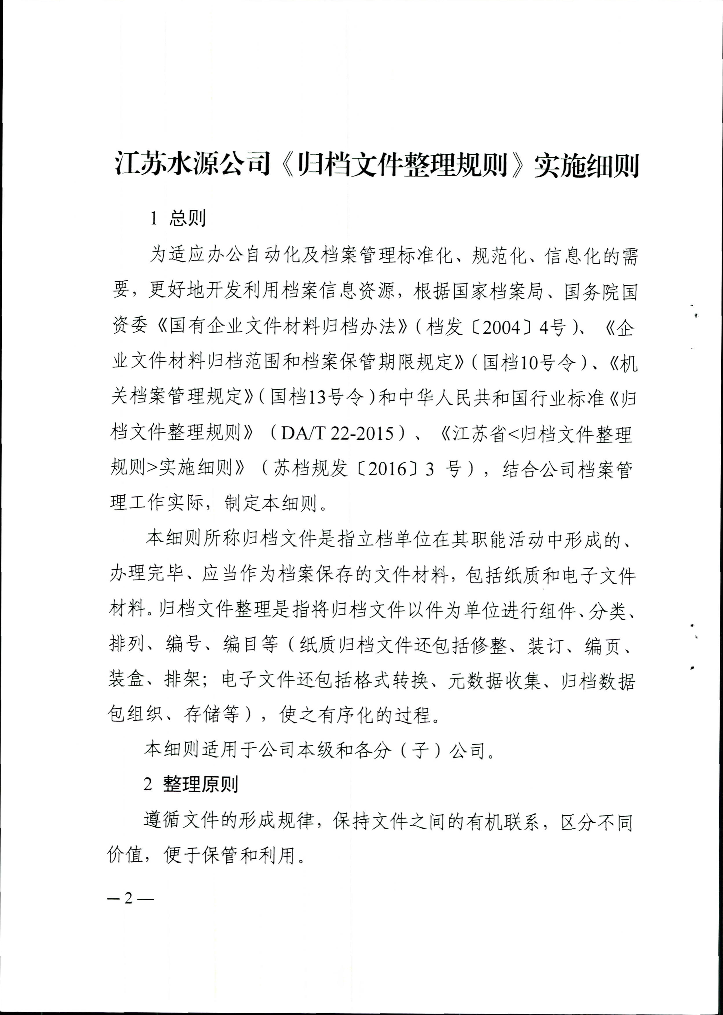 苏水源档(2019)1号江苏水源公司关于印发《归档文件整理规则实施细则》的通知
