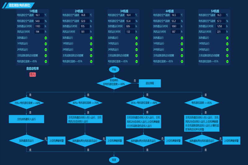 自投运以来,该系统交出了一份亮眼的“成绩单”。在安全保障上,系统将主电机湿度稳定控制在50%-65%的安全区间,绝缘性能检测合格率提升至100%,彻底消除了雨季停机受潮风险,为机组运行筑牢“数字防线”。
